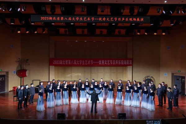 近日,湖北省第八届大学生艺术节开幕,经评选委员会评选,永利官网大学生艺术团徐晓蕾老师指导春蕾合唱团选送的两首作品《满江红》《雪花的快乐》成功入选本届艺术节优秀文艺节目现场展演。