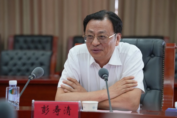李崇光致辞。他简要介绍了学校办学历程、办学特色和办学成果。彭寿清一行通过观看学校宣传片,全面了解了学校办学起源、发展历程、育人理念、教学改革、师资队伍、专业建设、校企合作、科学研究、校园文化、办学实绩等内容。