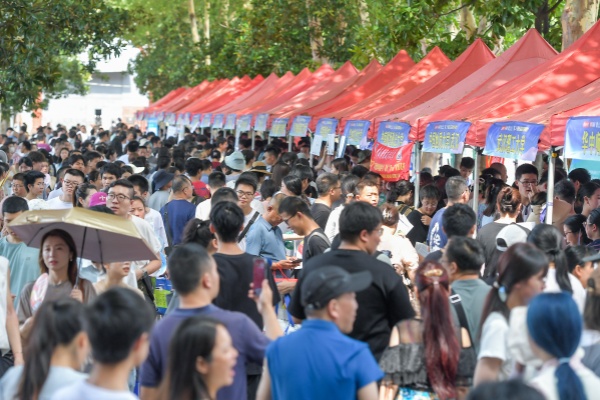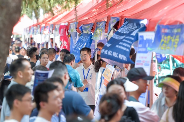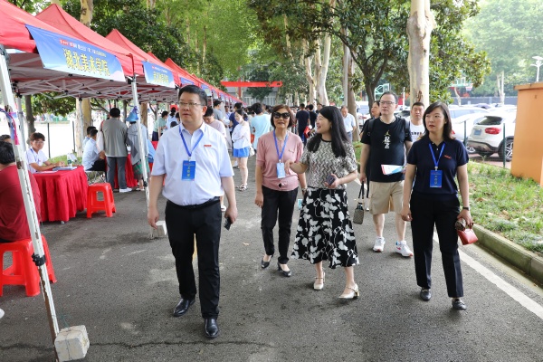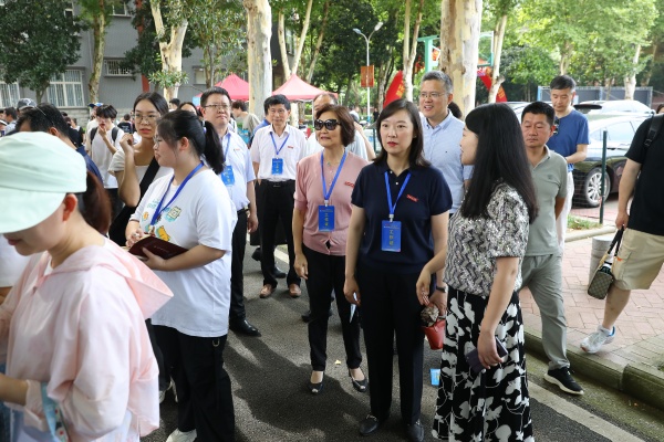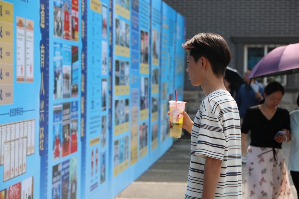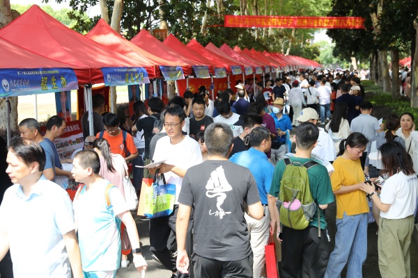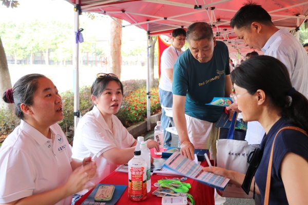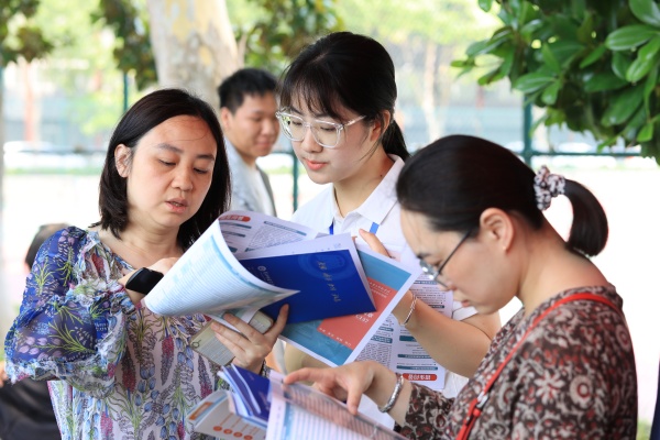 酷暑炎炎,却挡不住学校教职员工火热的心。清晨,各学院、职能部门工作人员早已准备就绪,他们身着统一的学校文化衫,在各自岗位上以最热情的姿态迎接考生和家长们的到来。校青协的志愿者们在学校门口设岗,为前来咨询的考生和家长发放学校地图和文创产品,服务贴心周到。