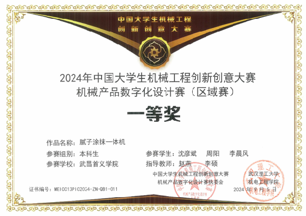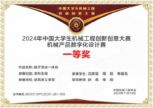 机电学子获2024机械产品数字化设计赛全国一等奖5项
