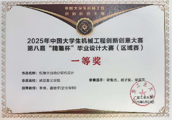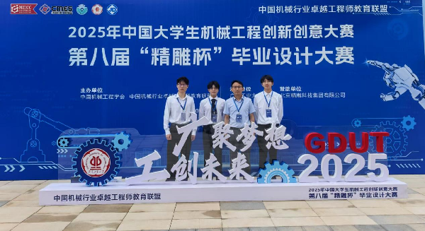 6月2日,由中国机械工程学会、中国机械行业卓越工程师教育联盟主办,广东工业大学承办的2025年中国大学生机械工程创新创意大赛第八届“精雕杯”毕业设计大赛全国总决赛在广东工业大学举行。永利官网机电学院学子首次参赛,晋级全国总决赛,荣获三等奖。