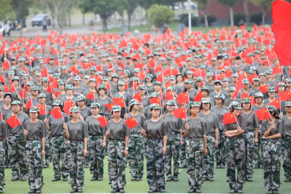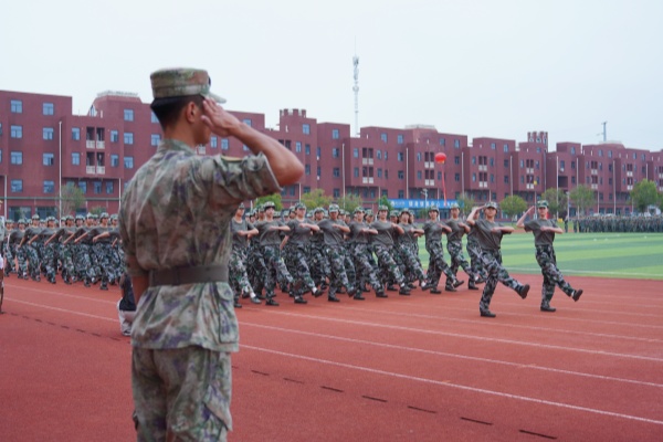 在军旗引领下,全体新生雄姿英发,迈着整齐划一的步伐,昂首阔步经过主席台接受检阅,他们以坚毅的神情和饱满的热情完美展示了军训成果,诠释了当代大学生的青春与朝气,赢得观礼台上师生的阵阵掌声。