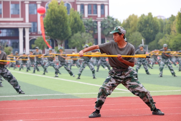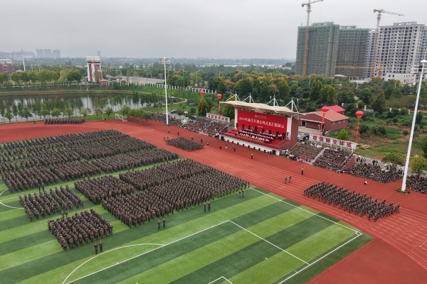 理事长金国华讲话。他代表理事会向顺利完成军训的全体新生表示热烈祝贺,向信息支援部队工程大学的领导和教官致以崇高敬意和衷心感谢,向长期以来大力支持学校建设发展的嘉鱼县委县政府、中国银行咸宁分行,以及嘉鱼国控集团等各级领导表示诚挚谢意,向为本次军训辛勤付出的教职员工表示亲切慰问。他表示,习近平总书记说:有梦想,有机会,有奋斗,一切美好的东西都能够创造出来。是指导青年人成长成才的“金钥匙”。他以“梦想、奋斗、创新”为关键词,勉励全体新生以军训为起点,将军训中培养的好思想、好作风、好习惯带到今后的学习和生活中去,刻苦学习,勇于实践,全面发展,用梦想、用奋斗、用创新努力书写新时代属于自己的壮丽篇章。