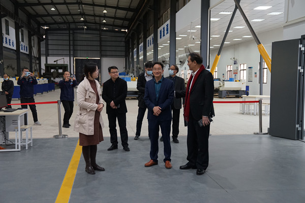 在金国华的陪同下,马凤余一行参观了体育馆、机电实验大楼和智能制造工程训练中心。
