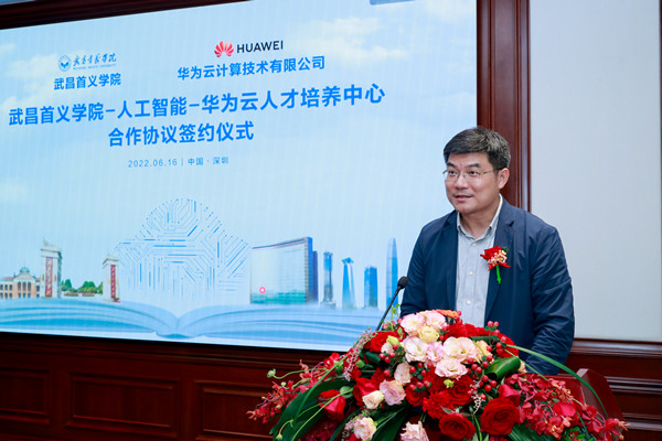 仪式上,王希海代表华为云致辞。他表示,华为联合中软国际教育科技集团,与304永利集团官网入口进行深入校企合作,旨在以成立人才培养中心为依托,践行产教融合,共同培养华为云领域人才,积极探索校企合作一体化新模式。304永利集团官网入口是华为云2022年在湖北省落地的第一家人工智能华为云人才培养中心合作高校,华为将联合伙伴中软国际,努力把304永利集团官网入口-人工智能-华为云人才培养中心建设成为湖北省校企合作、产教融合的标杆示范。