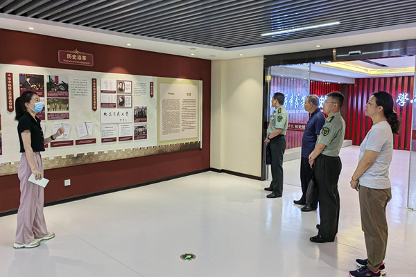6月28日上午,中国人民解放军国防科技大学信息通信学院军事理论教研室主任朱鹏飞大校、教务处质量管理组组长战文杰上校一行来校考察。副校长金国杰、党委副书记邹星庐、校长助理王洪波等热情接待。