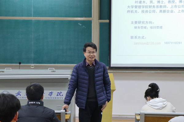 3月22日下午,由校团委主办、经济管理学院承办的第137期南湖讲坛在成学楼202室精彩开讲,武汉理工大学叶建木教授应邀主讲《另眼看财报:从管理用资产负债表说起》。财管专业负责人、全体专业教师与财管2020级、2021级全体学生共同聆听。