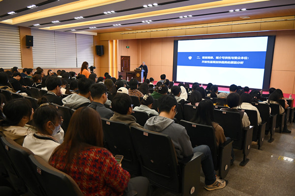 3月30日晚,由校团委主办,新闻与文法学院承办的第140期南湖讲坛在成学楼106室精彩开讲,武汉大学新闻与传播学院院长强月新教授应邀主讲《新闻语言的开放性》。副校长兼新法学院院长石长顺、党总支书记吴世杰、副院长余林,各专业教师、辅导员及学生代表共同聆听。