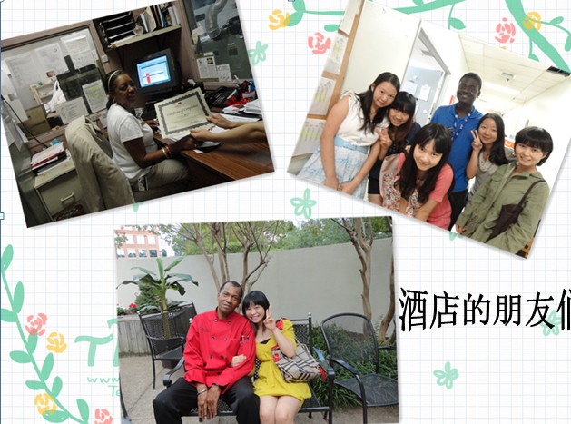 时间飞逝,转眼间工作结束的日子掐指可算,三个半月说起来也不短,可是把时间放到日子里,才发现原来那只是转眼间的事,同行的同学都有同感:感觉才来没多久就又要离开了,美国,难道才开始了解你,又到了分别的时候么?还记得第一次看见它的兴奋,想象工作的场景,虽然来之前有一定心理预期,可是真正工作了才发现housekeeping 跟我预想的还是有那么点差别的,刚进企业那会,每个人都由一个在职的员工train 一周,虽然我的师傅 MARIA 现在已经不在crowne plaza 工作了,可是还有必要提及那是个很爱笑却不怎么会英语只会讲西班牙语的漂亮女人,刚开始跟着她学习的时候,不懂的问题问她,她也是很茫然,两个人的交流算是比手划脚,很纠结的过完培训期,基本上所有的工作程序是看会的跟在督导检查纠正下学会的。我们的主管SHARON 是个变脸很快的中年黑人妇女,有时候看见她是笑嘻嘻的,过一会再见便是阴着脸,搞的我们一起工作的八个中国女生都有点怕她了,不过工作起来,要是没做好,她不会批评你而是会说:I show you,还算是哥比较体贴的上司吧,跟我们讲话的时候刻意放缓语速。我们second supervisor 是BINDER,有人跟她起了个很亲切的外号“鼻钉姐”,是个特别爱说话的印度女人,跟sharon 形成对比的是,工作出了小错,她会不停的说你要怎么做而不是帮你做,不过按中国俗话:话多的人心都不会太坏,在我看来她算是最疼我们几个中国女生的 supervisor 了。The third supervisor是我们的RONA 姐,她是个很有趣的美国黑人,冷不丁的会跟你讲起搞笑的话,一起工作的同事都比较友好,比如luandry 的老奶奶,厨房的两个同事,有的还专门向我们学习中文问候语,比如说VEE,GARRIC,还有工程部的那个主管。但是并不是所有的人都是友善的,比如6楼那个很crazy 的 Tammy,7楼那个很喜欢偷偷拿我们车上东西的老太太ALNA,唉,看到老太太的份上,有时候都不好意思说她,惹不起还躲不起嘛?我最怕工作中会被分到跟她们同楼层工作。虽然housekeeping 的工作很无聊,但至少我学会了做卫生,对于我这个在家什么都不愿意做的人来说,也算一种进步。