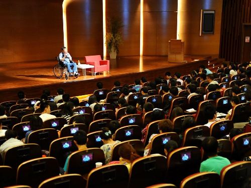 文化大学给我的第一印象是很美的。学校坐落在阳明山上,绿树环绕。起雾的时候云雾缭绕,感觉像生活在仙境一样。从体育馆顶楼放眼望去,可以俯视全台北市,而与之遥遥相望的便是台北的101大楼。学校的后山是有名的擎天岗,可以泡温泉。每到夜晚,总有情侣们牵着手沿着后山散步,无法形容的罗曼提克。当然,这边不管是硬件条件还是软件条件都是很不错的:硬件方面,教学资源设备很齐全,有专门的实验楼,研究室,就我们应用学系而言,有专门的语音室,录像室,口语练习室等等;软件方面,老师授课很精彩,也很有特色,他们并不是很单纯的教课,而是用心去和学生交流。同时,不得不提的是文大的图书馆,号称是台湾实体藏书最多的私立大学。藏书很多,还有有很多国内外的期刊,都是最新的,还有很多国外原版书籍,还有一个免费的多媒体学习中心,可谓用来学习语言的圣地,这让我一个学习语言的学生感到很兴奋。当然遗憾的是因为时间原因,去的很少,有机会的话一定会好好利用。