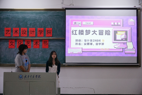 此次共有12组选手晋级决赛展开终极角逐。他们依次上台介绍自己的作品,匠心独运地将中华传统文化与现代创新设计进行碰撞、融合,让东方美学在新时代焕发出别样光彩。其中,设计2402班李和静联动哪吒、舞狮等国潮元素,让一个个生动活泼的动漫形象展现出非遗新活力;设计2402班韩帧充分利用现代信息技术,将文创设计与交互设计、3D展厅相结合,设计出独具荆楚文化特色的“荆楚纹韵”系列产品,展示了荆楚文化的别样韵味;设计2404班安丽娜和田宇婷以《红楼梦》为蓝本,通过现代化的方式对传统文化进行创新表达,用“冒险”且新颖的视角打开“大观园”的游戏世界。