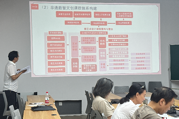 此次参与评审的8个申报项目涵盖多个教学改革方向。其中,肖巍老师阐述了分步骤建设非遗工坊等实践课堂、双创讲堂等理论课堂以及乡村美育等弹性课堂,以“三堂联动”形式品荆楚非遗,促文旅共兴。评审专家纷纷称赞项目前期研究扎实,根基稳定,创新立意。
