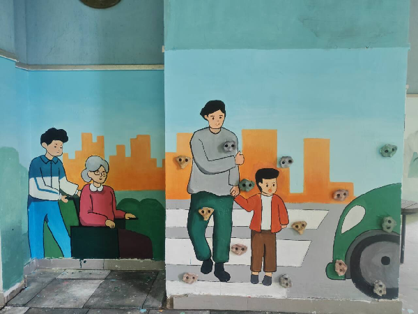 近日,由艺术设计学院学生团队负责的洪山街道保利心语社区部分架空层墙面文化墙绘制完成。此次创作历时两周,画作涵盖 “家风家训”“童趣”“红色传承” 等主题,在美化社区环境的同时,成为传播文明理念的重要载体。