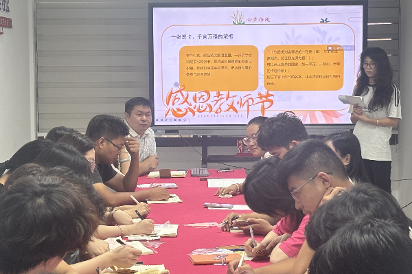 经济管理学院精心策划开展了“感恩献礼、感恩回想、感恩光影、感恩体验”主题活动。“五个一”行动中,学院倡议并引导学生通过“道一声感谢”“写一段祝福”“帮老师擦一次黑板”“给老师一个热情的拥抱”“帮老师续一杯水”,向老师们表达最真挚的节日祝福,以实际行动弘扬尊师重教风尚。同学们纷纷以班级为单位,在课前课后向老师们道出“辛苦了!”“节日快乐!”暖心话语,并为老师们写下精美祝福卡,表达感恩之情与美好祝愿。院学生会也通过校园广播开展点歌送祝福活动,让深情的旋律回荡在校园每个角落。学院同时发起了“感恩光影”活动,鼓励同学们用镜头捕捉老师们课堂上的神采飞扬、答疑时的耐心细致、生活中的温暖瞬间,并收集以往记录的珍贵影像资料。为深化学生对教师工作的理解与尊重,学院还特别推出了“感恩体验”活动,志愿者们将在老师指导下,尝试进行课前准备、辅助批改作业、组织课堂讨论等部分工作,通过亲身体验深刻感受教师工作的辛劳与不易。