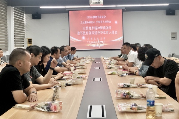 后保总支举办了庆祝教师节座谈会,向长期坚守后勤岗位、默默奉献的教职工致以节日问候与崇高敬意,40余名在校工作二十余年的教职工代表参加座谈,共话后勤服务与发展,共享节日温情。会上,后保总支书记陈佃生向教职工们致以节日的祝福;各部门负责人为教职工代表们送上了精心准备的鲜花。互动交流环节,教职工代表们结合工作经历,分享了自己岗位上的难忘故事。后勤集团副总经理张慧感慨道:“这束鲜花,是学校对我们工作的认可,拿在手里暖在心间,特别感动。”贺卡传情,温暖联动,保卫处工作人员将写满祝福的贺卡,逐一送到后勤处、保卫处、总务处各办公室的老师们手中,向他们致以节日问候。陈佃生表示,学校平稳运转离不开后保每一位同仁的付出,他们是统筹协调的枢纽,更是育人事业中不可或缺的力量。方寸贺卡传递深情,向后保人平凡而伟大的坚守致敬!值得一提的是,教师节当天,总务处水电中心组织水、电、木工师傅们坚守施工一线铺设电缆,保障学校供电需求;校园管理中心不仅细致做好了校园环境卫生清扫,还精心完成了教师节表彰大会现场鲜花布置,用实际行动诠释了后勤人的责任与担当。