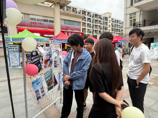 活动现场气氛热烈。团委办公室为招新准备了趣味盎然的活动:第一关根据表情图片匹配部门,第二、三关分别根据表情图片猜成语和诗句,最后一关则以问答形式展示校团办开展的活动。丰富的活动形式吸引了同学们热情参与。在社团联合会招新展位前,同学们争相体验扎染工艺和漆扇制作两大特色项目,素白的扇面随着手指转动渐渐绽放出一幅幅雅致图案,每一件作品都是独一无二的。在青年志愿者协会展位前,一张张志愿服务活动照片尽展“奉献,友爱,互助,进步”的志愿精神。与此同时,潇瀚文学社以“绘图猜书”吸引同学;智能建造社以建筑技术凸显亮点;独立音乐社带来现场乐队演奏,将气氛推向高潮;模拟联合国协会、南湖树人悦读协会等社团则准备了各种小游戏和精美礼品,吸引同学们加入。