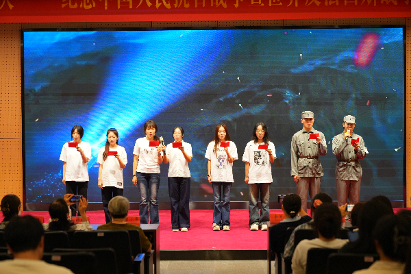 据悉,为纪念中国人民抗日战争暨世界反法西斯战争胜利80周年,自今年8月起,外国语与教育学院党总支同步发起了“声载历史·语传薪火”双语配音活动,全院学生积极响应、踊跃参与,共征集到25部精彩配音作品。同学们以声传情、以音达意,用英语生动演绎历史片段,再现那段波澜壮阔的抗战岁月。本场晚会既是对历史记忆的深情回望,也是对前期配音活动成果的集中展示与表彰。