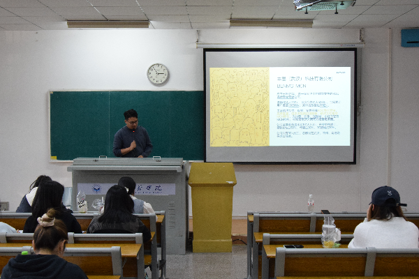 随后,浙江拾逸文化传媒有限公司、本墨科技有限公司、湖北芒果教育科技有限公司等6家企业依次上台宣讲。各企业代表通过PPT、案例分享等形式,详细介绍了公司发展历程、核心业务板块、岗位需求及薪资福利体系,提供了行政、人事、运营、直播等岗位,吸引了大批新媒体专业学子关注。